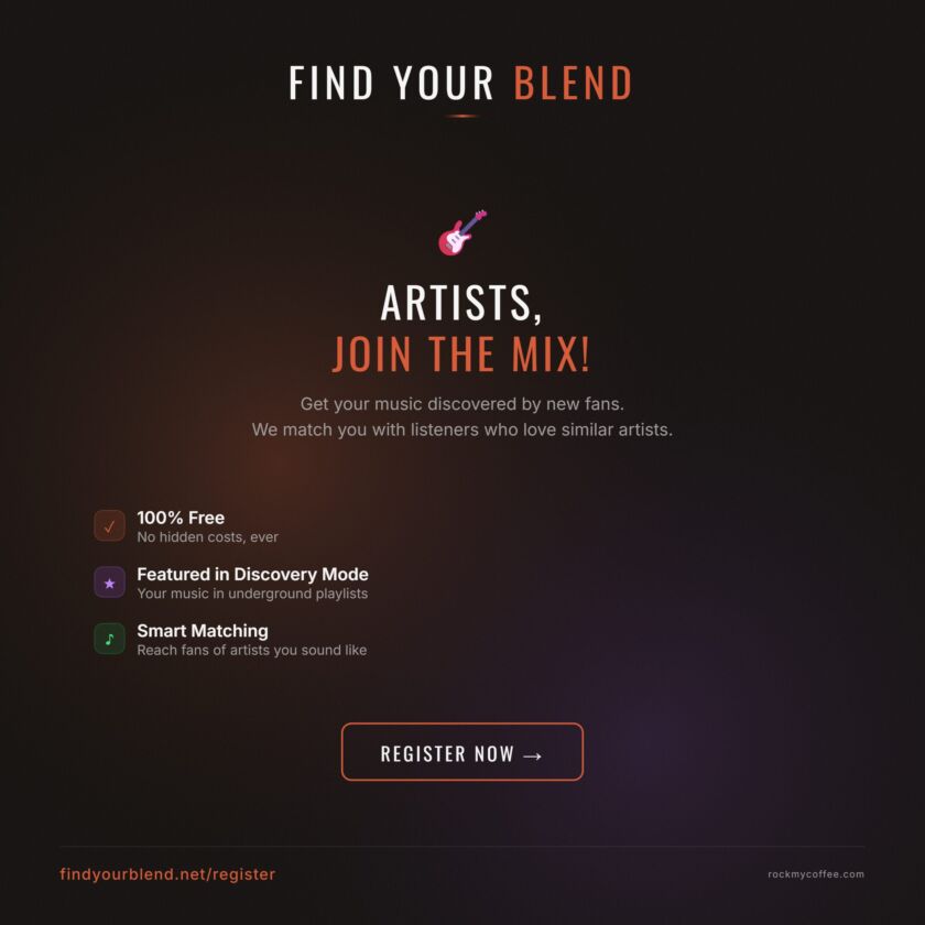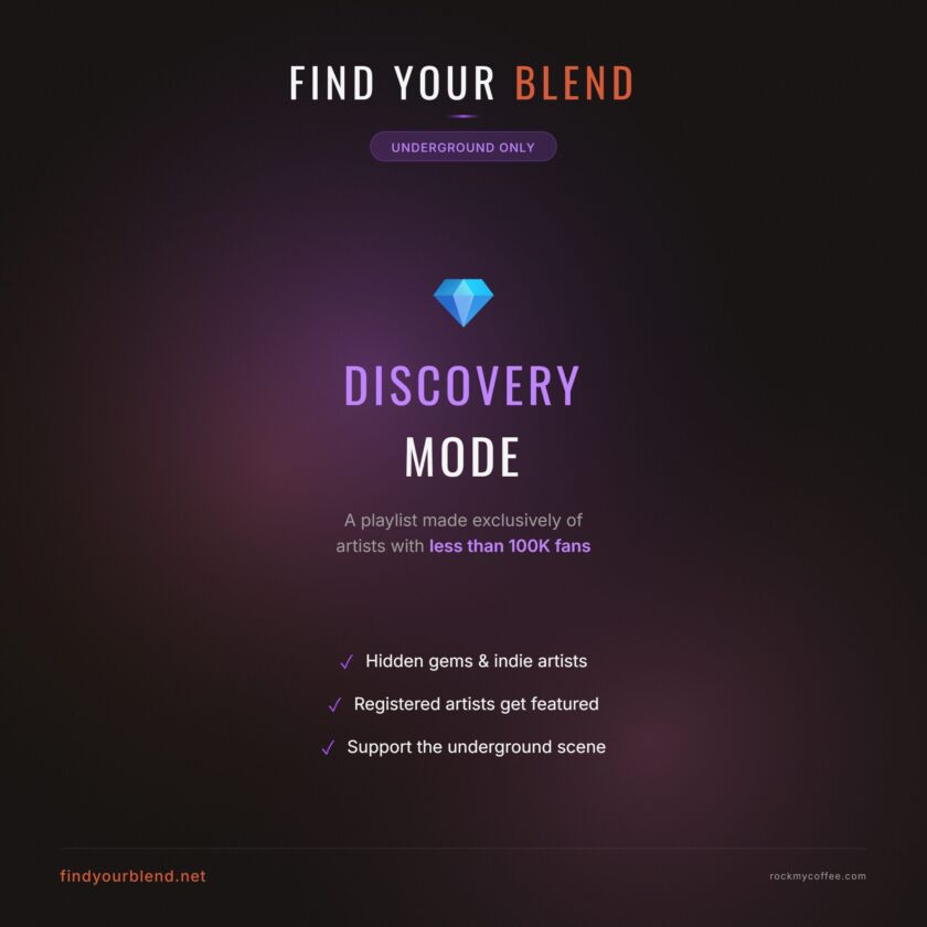 Same brewing techniques, different results, with a playlist composed ONLY of underground artists with fewer than 100k followers on streaming platforms. I love this hidden gem digger. Already found so many cool bands during the testing phase.